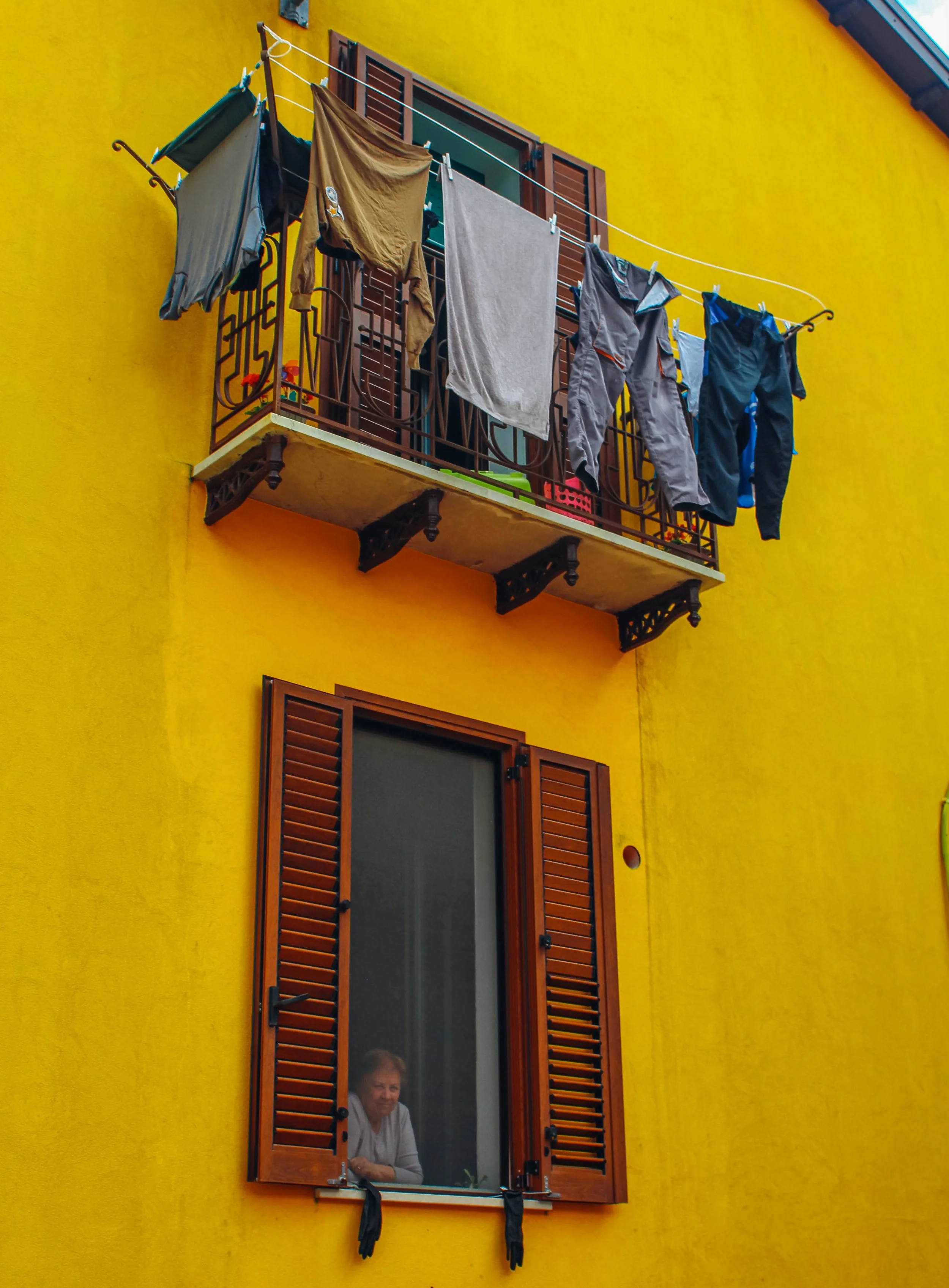A woman looking out of an open in Pescopagno, Italy.